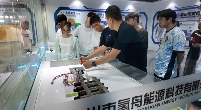 在常州市氢舟能源科技有限公司的“零碳车间”里,师生们与企业研发团队围绕氢能应用展开深度交流。公司技术总监结合“氢舟1号”氢燃料电池动力船的研发故事,讲解了企业如何突破核心技术,打造绿色航运标杆的历程,现场展示的电解制氢系统模型,让同学们清晰理解了“3.98千瓦时/美标方”这一行业领先电耗指标的技术价值。在互动问答环节,“氢能安全存储”“产业商业化路径”等问题接连抛出,企业总经理的细致解答,不仅普及了新能源知识,更传递了“技术创新驱动绿色发展”的产业理念,激发了学生对新兴产业的探索热情。