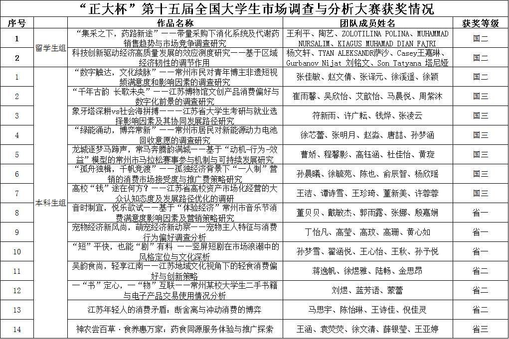 在第十五届“正大杯”全国大学生市场调查与分析大赛中,我校学子奋勇争先,再创佳绩。经过校内选拔赛的激烈角逐,共有14支本科生队伍和2支留学生队伍脱颖而出,代表我校参加省级及国家级比赛,充分展现了我校学子扎实的专业功底与出色的创新能力。